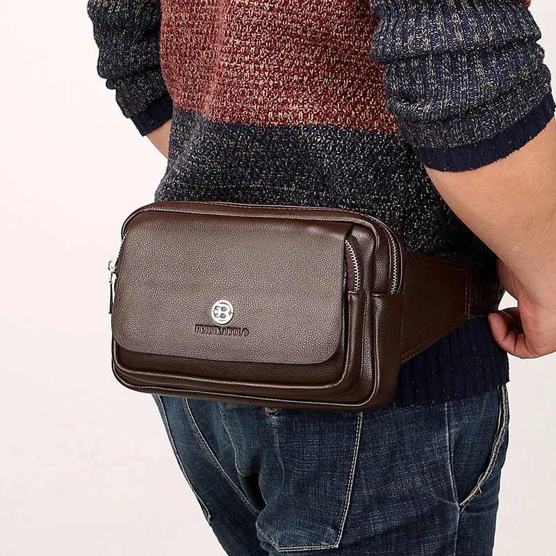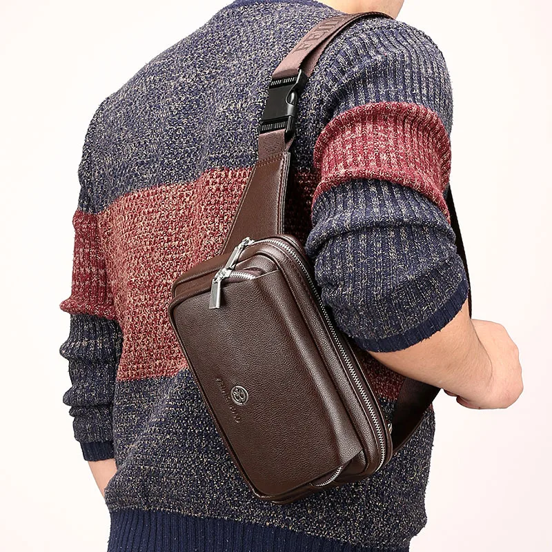 Flash Sale Men Casual Outdoor Waist Pack Genuine Leather Chest Pack Multi-functional Wallet Sports Small Destr